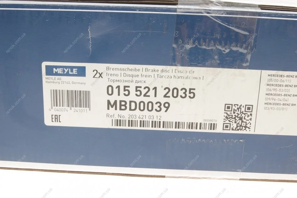 Диск гальмівний MEYLE 015 521 2035 (a2034210312, A2104210712, A2104212412)