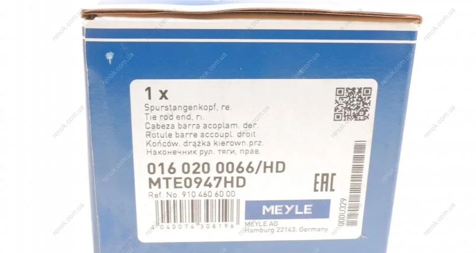 Наконечник тяги рульової (R) MB Sprinter (907/910) 18- (209,6мм) MEYLE 016 020 0066/HD (a9104606000, 9104606000)