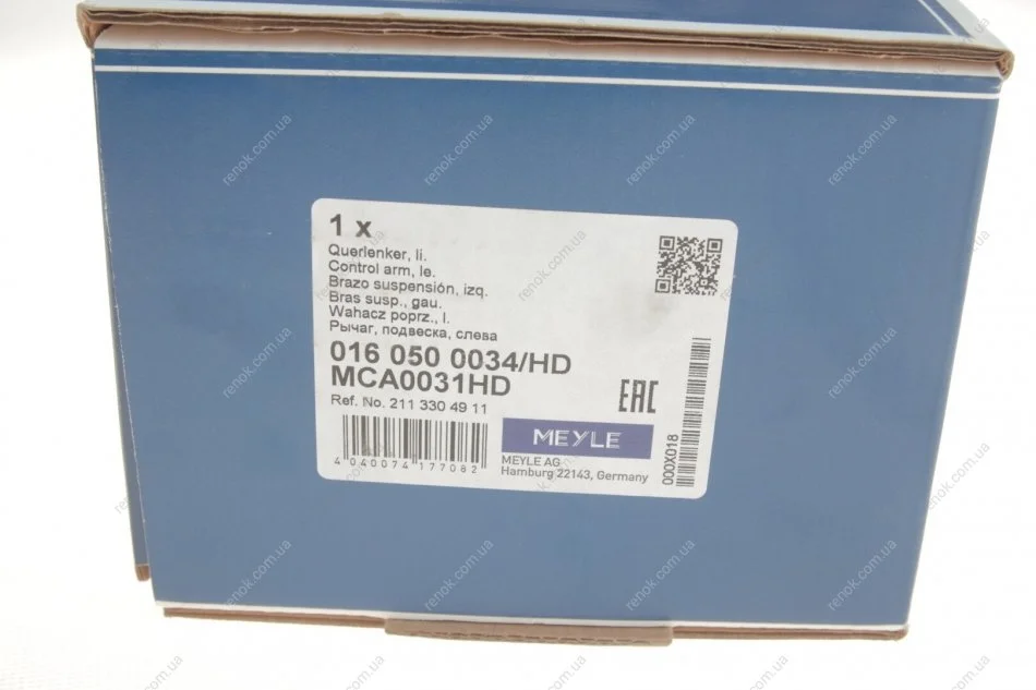 Важіль підвіски (передній/знизу) (L) MB E-class (W211) 2.0-6.3 01-12 MEYLE 016 050 0034/HD (a2113301111, A2113301511, A2113302911)