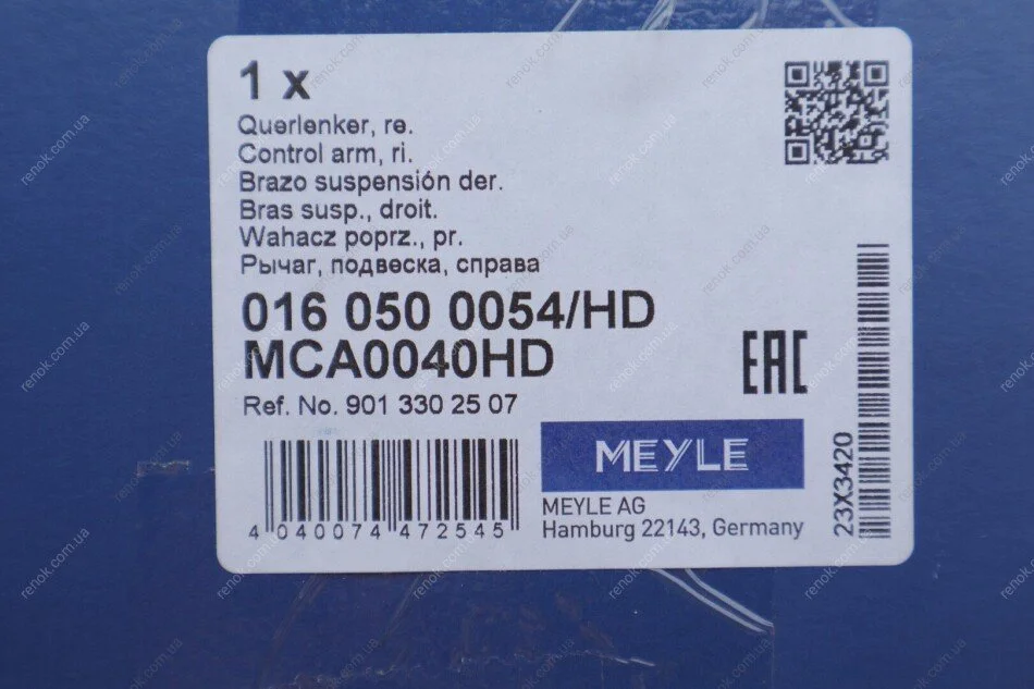 Важіль підвіски MEYLE 016 050 0054/HD (9013301707, 9013301907, 9013302507)