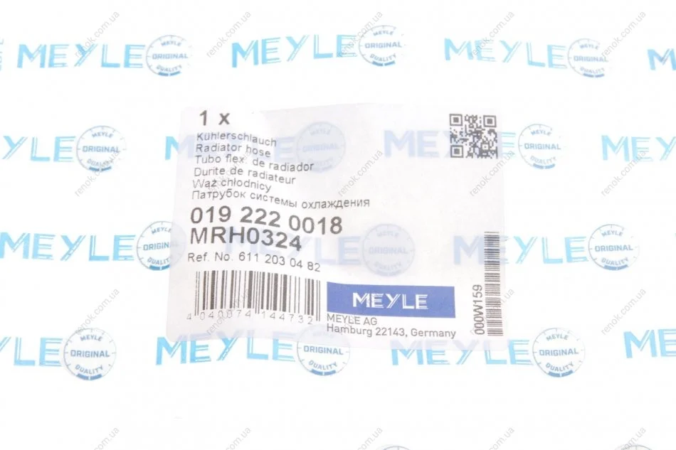 Патрубок системи охолодження MEYLE 019 222 0018 (a6112030482, 6112030482)