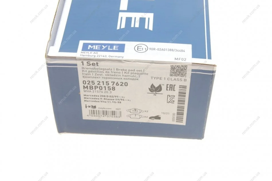 Комплект гальмівних колодок з 4 шт. дисків MEYLE 025 215 7620 (a0024203920, 0024203920, 2D0698151)