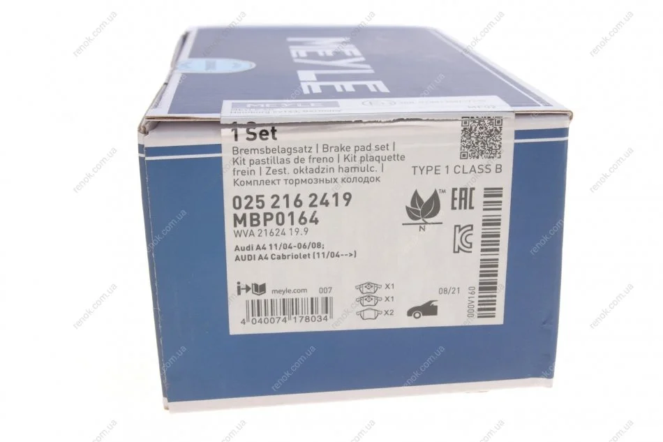 Комплект гальмівних колодок з 4 шт. дисків MEYLE 025 216 2419 (8D0698151A, 8D0698151C, 8D0698151F)