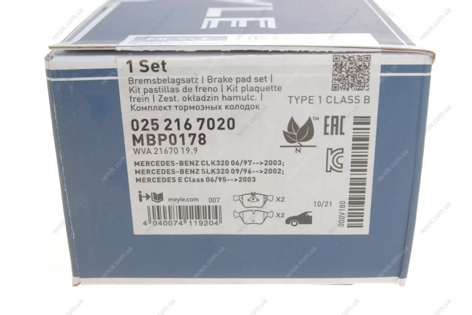 Комплект гальмівних колодок MEYLE 025 216 7020 (a0024204520, A0024205020, A0034202920)