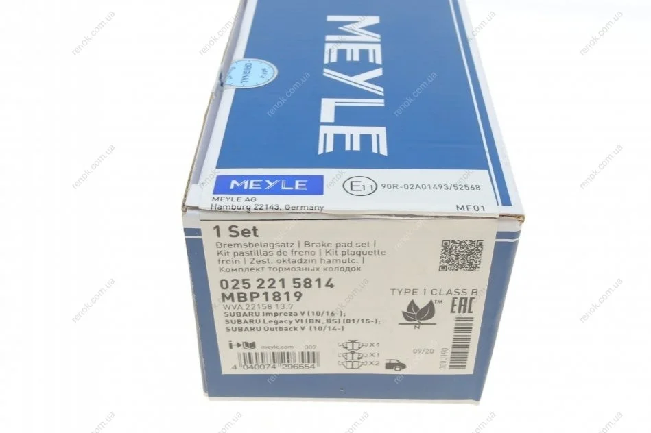 Комплект гальмівних колодок MEYLE 025 221 5814