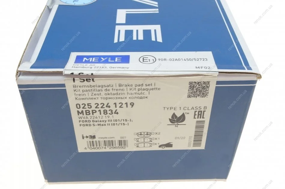 Комплект гальмівних колодок MEYLE 025 224 1219 (ktj1gc2k021aa, 1884555, e1gc2k021ac)
