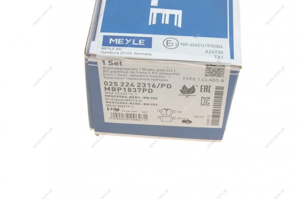Колодки гальмівні (задні) MB C-class (W205)/GLC (X253) 15-19 MEYLE 025 224 2316/PD (0004207803, A0004205200, A0004205900)