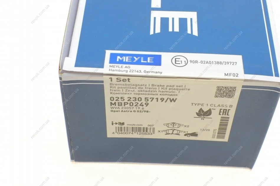 Колодки гальмівні (передні) Opel Astra G 98-09 (Ate) MEYLE 025 230 5719/W (1605009, 1605035, 1605957)