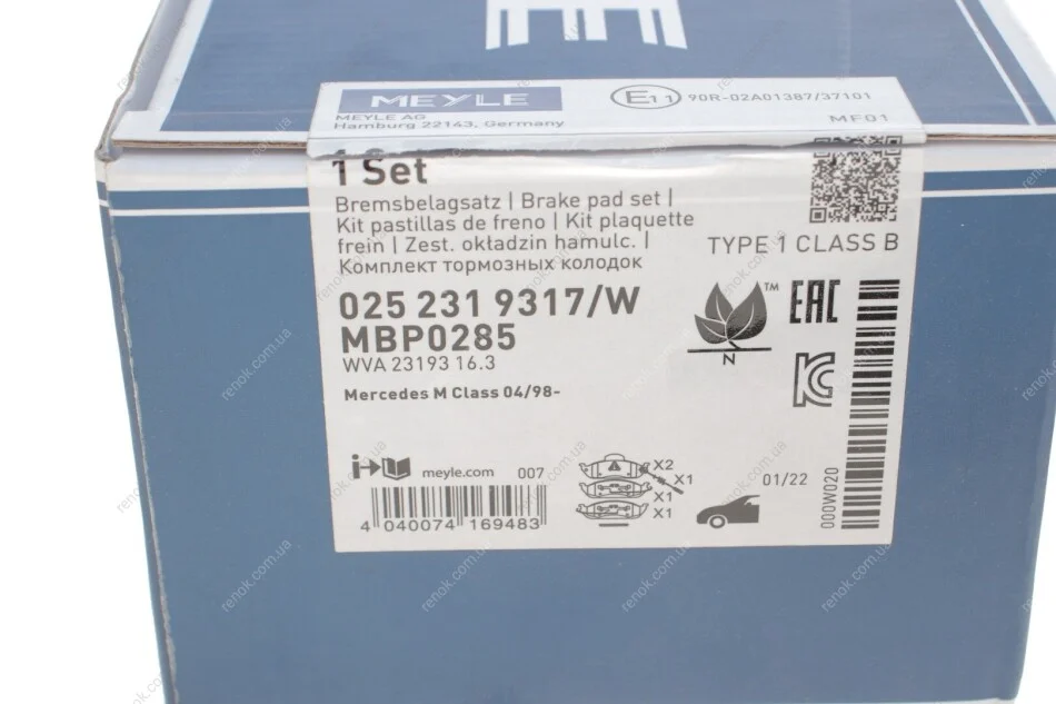 Колодки гальмівні (передні) MB ML-class (W163) 98-05 MEYLE 025 231 9317/W (a1634200020, A1634200320, A1634201220)