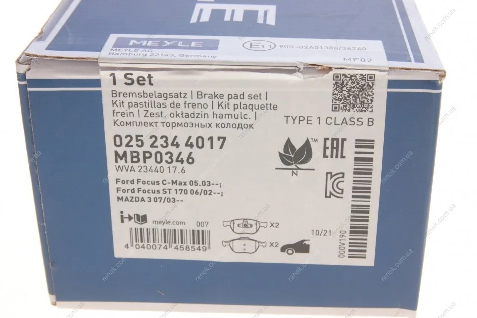 Гальмівні колодки дискові ME MEYLE 025 234 4017 (1360303, 2M5V2K021AA, 2T142K021AC)
