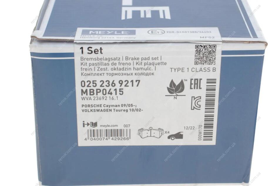 Комплект гальмівних колодок MEYLE 025 236 9217 (7L0698151, 7L0698151B, 7L0698151D)
