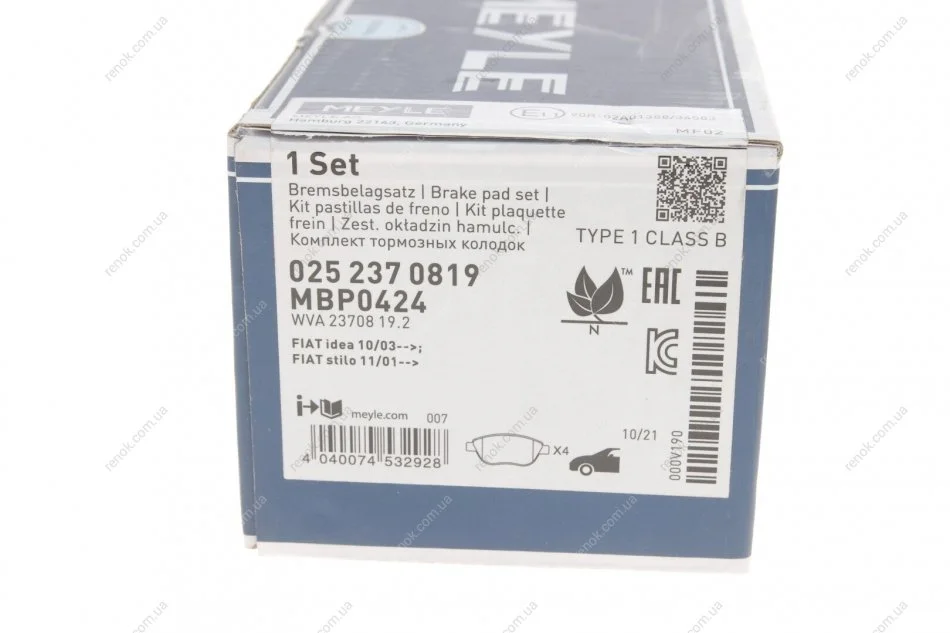 Комплект гальмівних колодок MEYLE 025 237 0819 (425492, 425253, 425331)