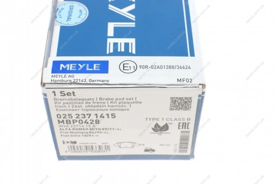 Комплект гальмівних колодок MEYLE 025 237 1415 (71769094, 77362271, 77362768)