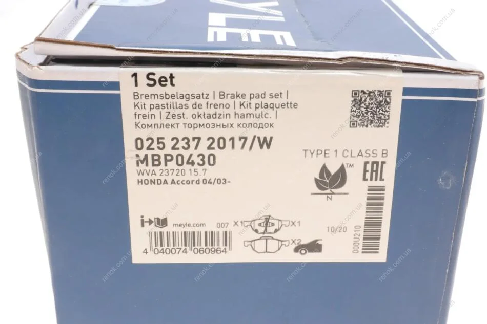 Колодки гальмівні (передні) Honda Accord 03-12 MEYLE 025 237 2017/W (45022SEAE01)