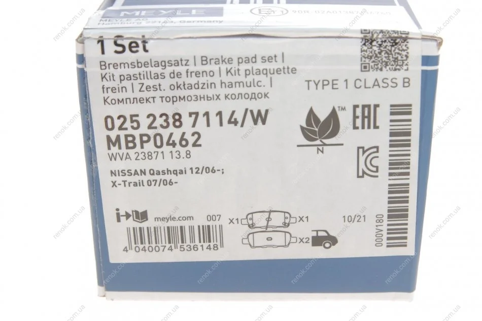 Колодки гальмівні (задні) Renault Koleos/Nissan Juke/Qashqai/X-Trail/Suzuki 08- (Akebono) MEYLE 025 238 7114/W (410601408R, D4060JA00A, AY060NS030)