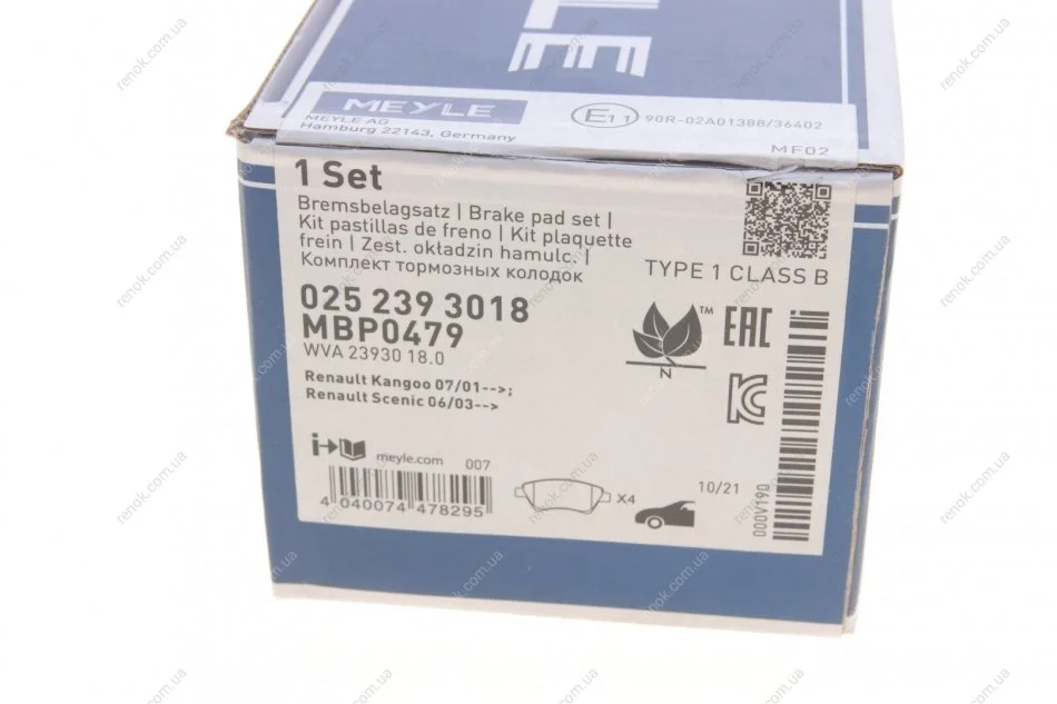 Гальмівні колодки дискові ME MEYLE 025 239 3018 (410608713R, 410601241R, 7701206044)