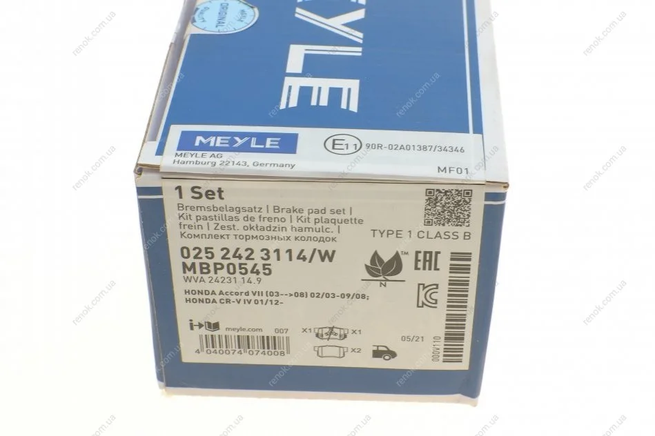 Колодки гальмівні (задні) Honda Accord IV/V/VI/VII 89-12/Civic VI/VII/VIII 94-/CR-V 01-07 MEYLE 025 242 3114/W (43022S9AE00, 43022SJFE00, 43022S9A010)
