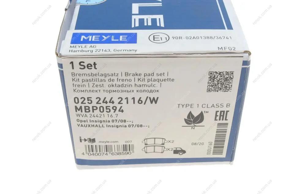 Колодки гальмівні (задні) Opel Insignia 08- MEYLE 025 244 2116/W (0542027, 13237765, 13237766)
