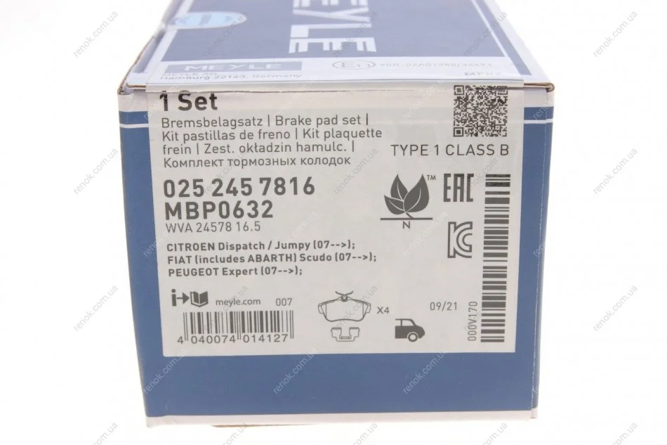 Комплект гальмівних колодок MEYLE 025 245 7816 (425367, 425497, 425368)