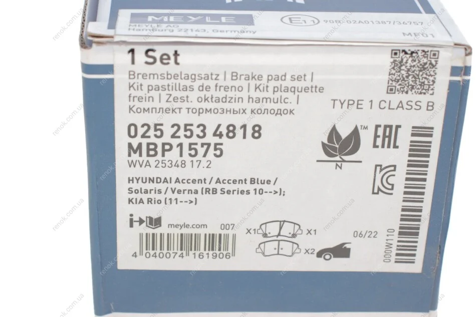 Гальмівні колодки дискові ME MEYLE 025 253 4818 (58101COA00, 581011RA05, 581011WA05)
