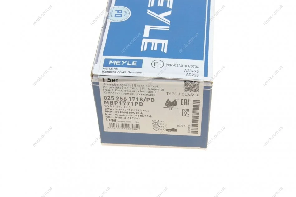 Колодки гальмівні (передні) BMW 2 (F45/F46)/5 (G30/F90)/X1(F48)/X2 (E39)/X3 (G01/F97) 13- MEYLE 025 256 1718/PD (34106884492, 34106860019)