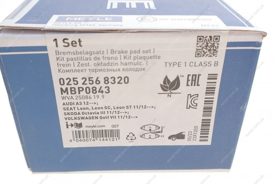 Гальмівні колодки дискові ME MEYLE 025 256 8320 (5Q0698151B, 5Q0698151, 8V0698151B)