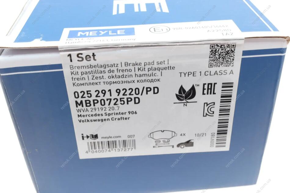 Колодки гальмівні (передні) MB Sprinter (906) /Vito (W639) (Brembo) (Platinum) MEYLE 025 291 9220/PD (9064210700, 9064212100, 9104204000)