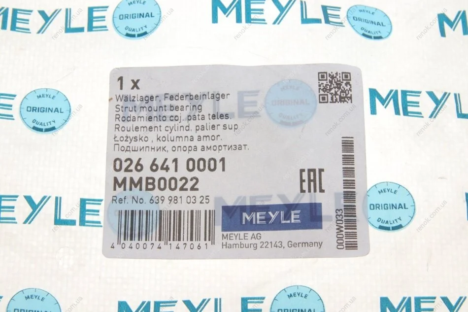 Підшипник кочення, опора амортизатора MEYLE 026 641 0001 (a6399810025, A6399810125, A6399810225)