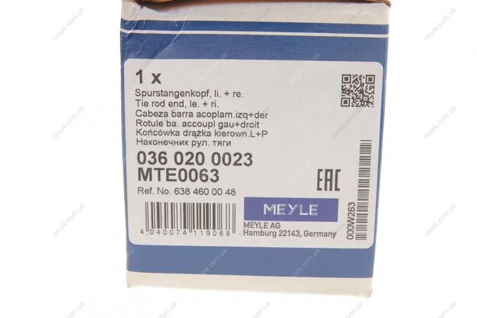 Накінечник кермової тяги MEYLE 036 020 0023 (a6384600048, A6384600205, 6384600048)