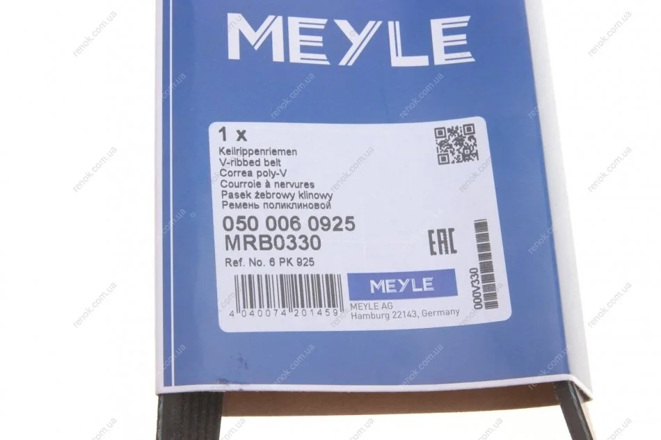 Ремінь генератора поліклиновий MEYLE 050 006 0925 (6453W0, 6453VA, 6453W1)