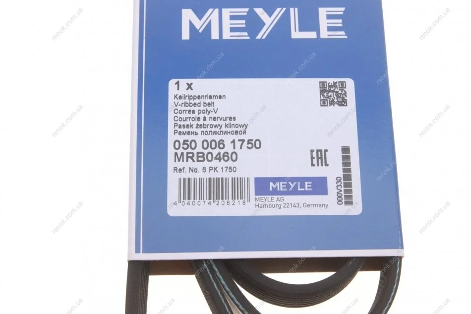 Ремінь генератора поліклиновий MEYLE 050 006 1750 (7700107175, 5000693140, 7700101261)