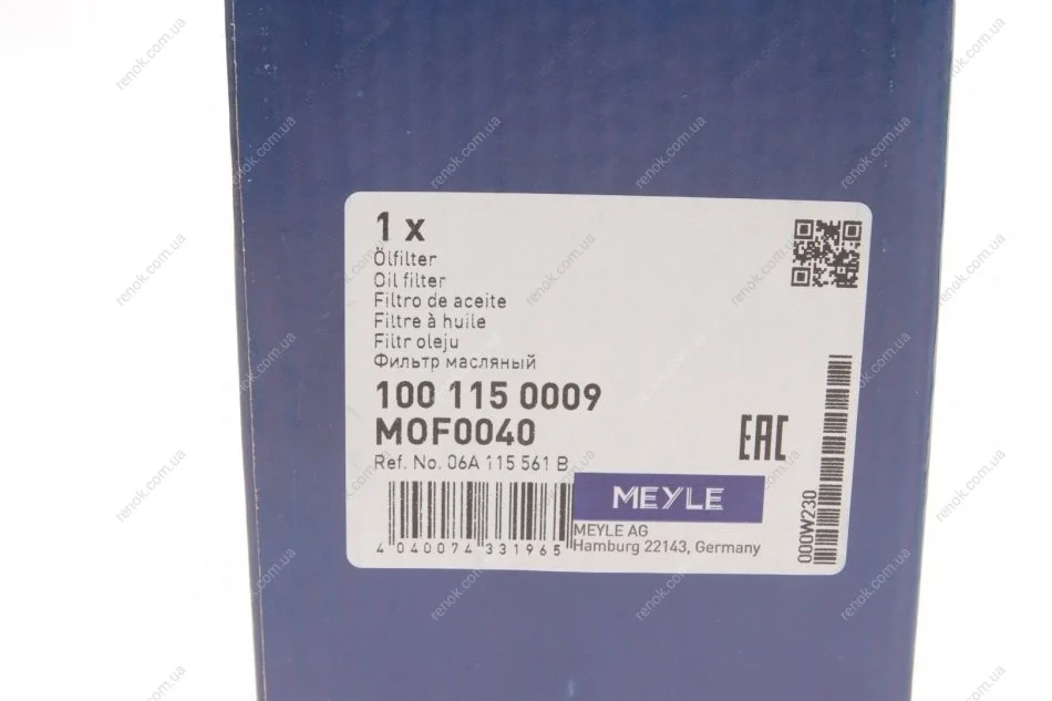 Фільтр масляний VW Caddy II 1.6 MEYLE 100 115 0009 (034115561A, 06A115561, 078115561K)