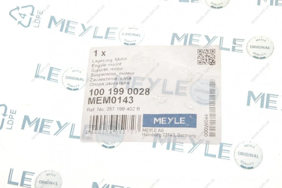 Подушка двигуна (задня) (L) VW Caddy II 95-04 MEYLE 100 199 0028 (357199402)
