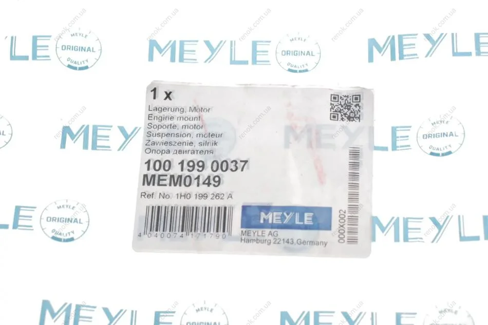 Подушка двигуна (задня) (R) VW Caddy II 95-04 MEYLE 100 199 0037 (1H0199262A, 1H0199262F)