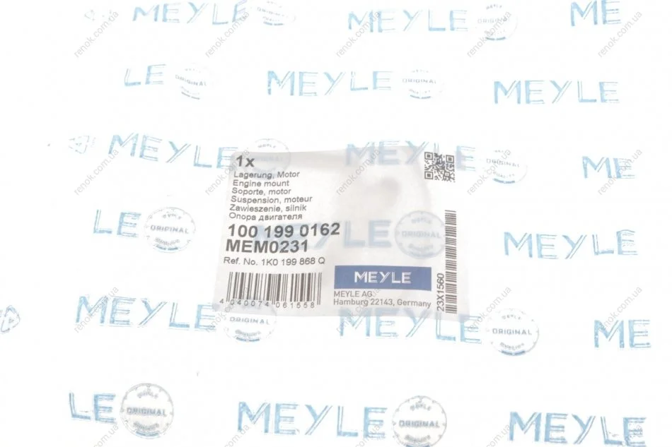 Подушка двигуна (верхня) Audi A3/Skoda Octavia/SuperB/VW Caddy/Golf/Passat 03- (з різьбою) (OE) MEYLE 100 199 0162 (1K0199868, 1K0199868A, 1K0199868C)