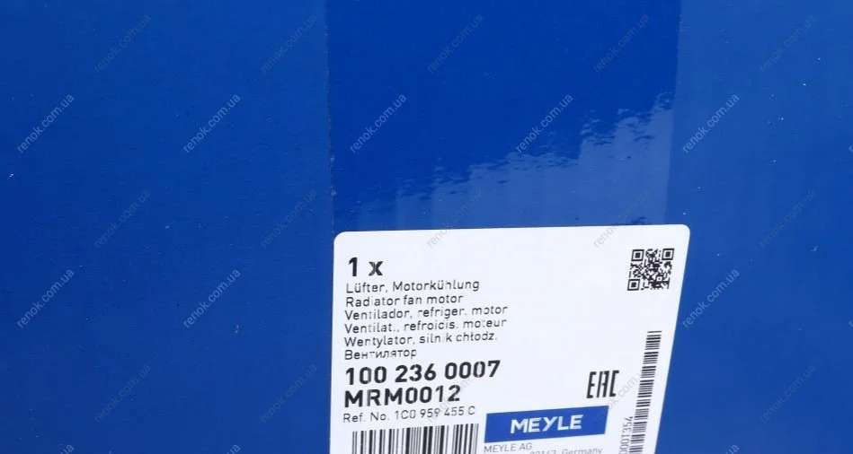 Вентилятор охолодження двигуна Audi A3/TT/Skoda Fabia/Octavia/VW Bora/Golf/Polo 1.0-2.3 96- MEYLE 100 236 0007 (1C0959455C, 1J0959455M, 6QD959455C)