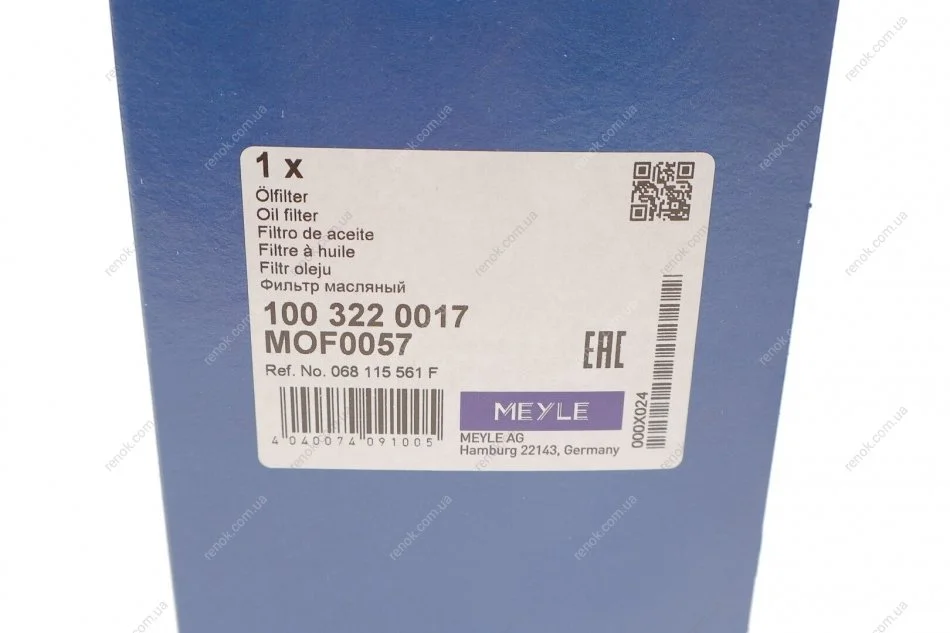 Фільтр масляний VW Passat 1.8 T 96-05/Skoda SuperB 1.8T 01-08 MEYLE 100 322 0017 (068115561F)