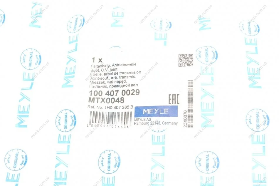 Аналоги "100 407 0029 MEYLE":