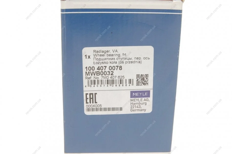 Підшипник маточини (передньої) VW Sharan 95-10 (43x80x38) MEYLE 100 407 0078 (1001718, 7M0199625, 7M0407625)