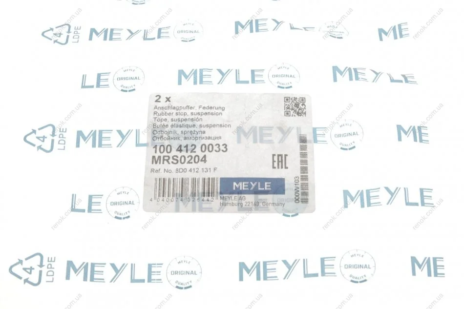 Аналоги "100 412 0033 MEYLE":