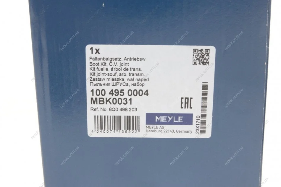 Аналоги "100 495 0004 MEYLE":