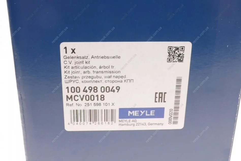 Аналоги "100 498 0049 MEYLE":