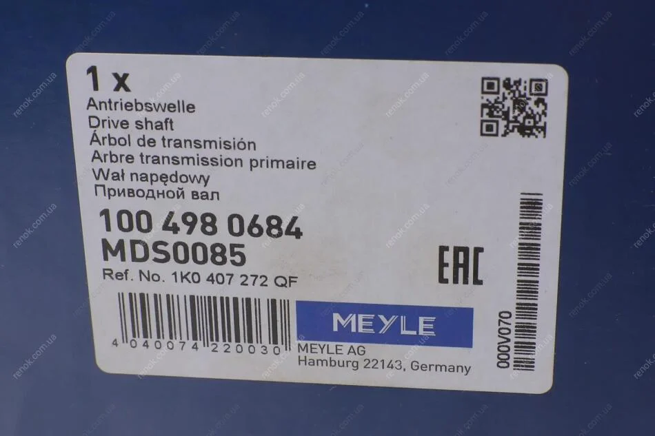 Привідний вал MEYLE 100 498 0684 (1K0407272KG, 1K0407272NK, 1K0407272QF)
