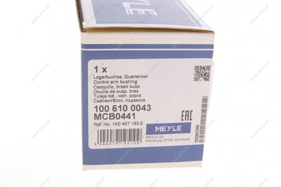 Сайлентблок важеля (переднього/ззаду) VW Caddy 03- (вставка) MEYLE 100 610 0043 (1K0199231J, 1K0199231G, 1K0199232K)
