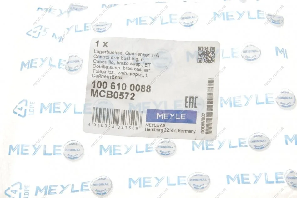 Сайлентблок важеля MEYLE 100 610 0088