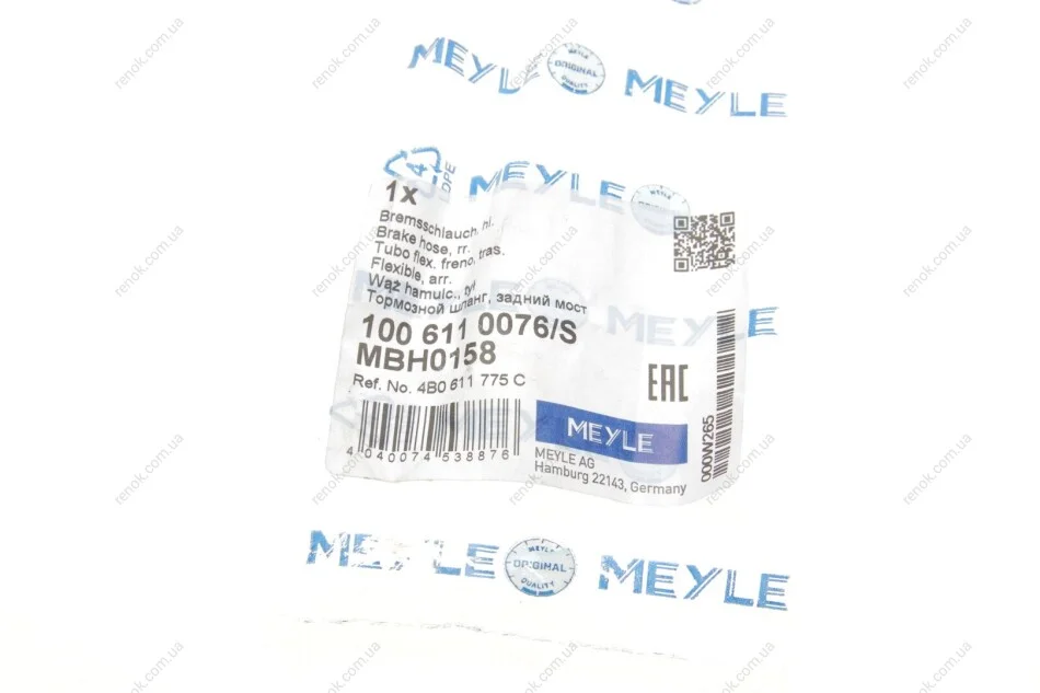 Шланг гальмівний (задній) Audi A6/VW Passat 97-05 (350mm) MEYLE 100 611 0076/S (4B0611775C)