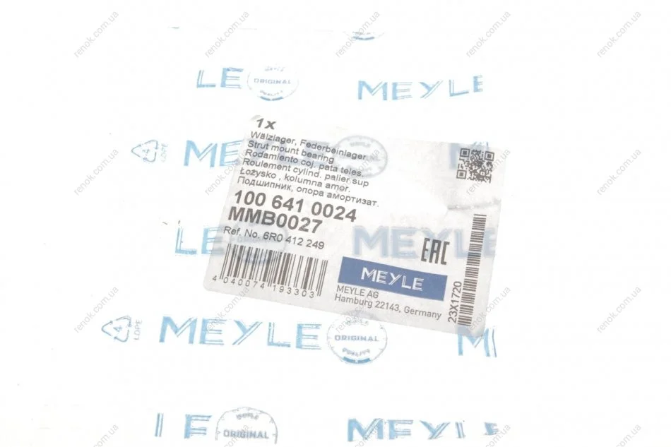 Підшипник амортизатора (переднього) опорний Audi A1/Seat Ibiza/Skoda Fabia/Roomster/VW Polo 09- MEYLE 100 641 0024 (6R0412249, 1102592, 4503300051)