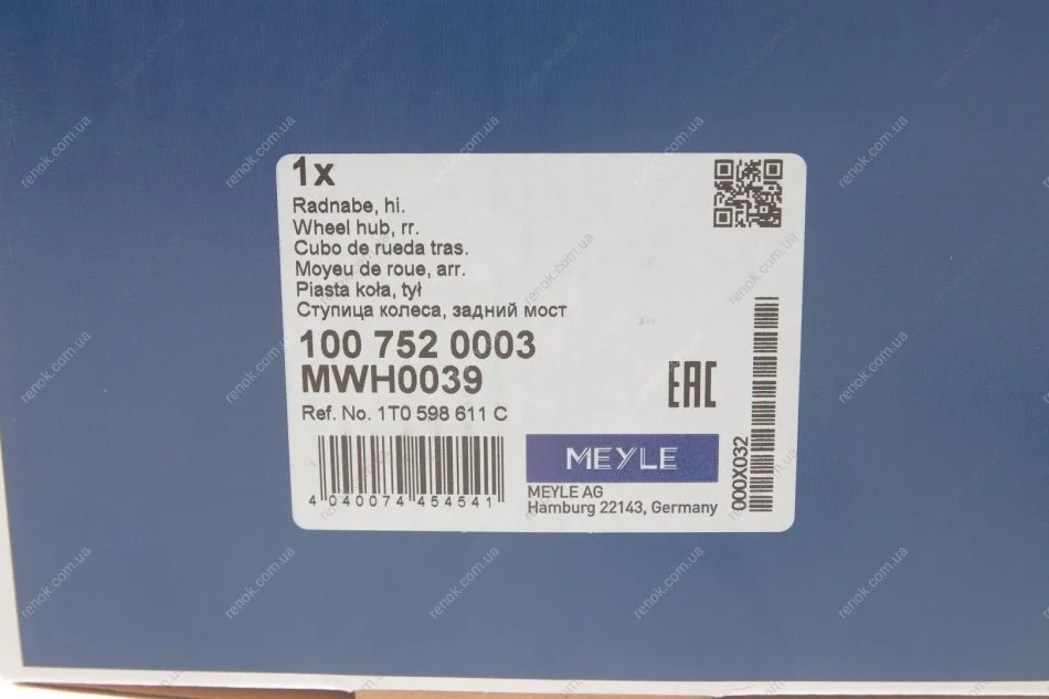 Комплектуючі "100 752 0003 MEYLE":