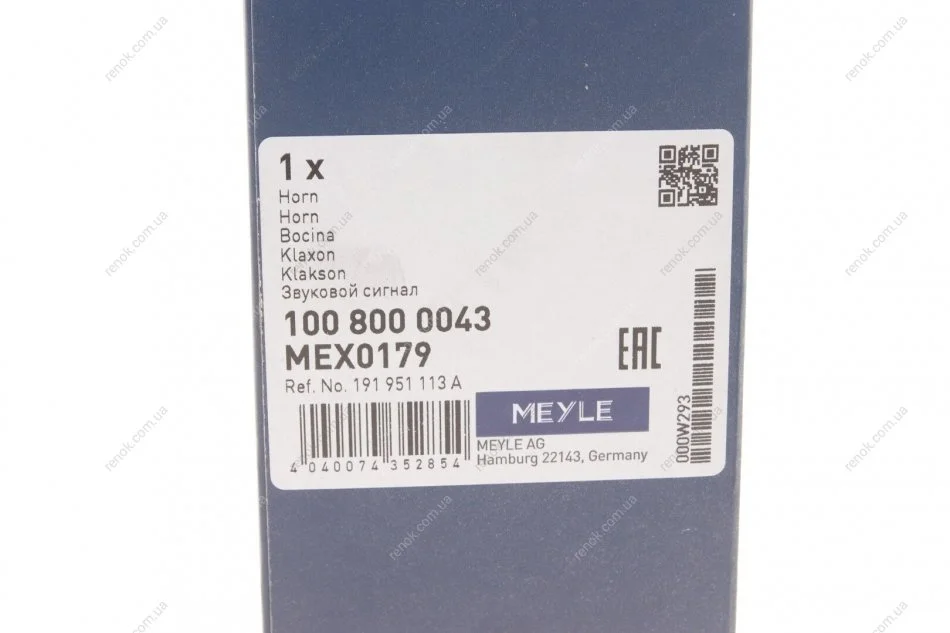 Сигнал звуковий сигналізації VW Caddy I/LT I/T2/T3 (низький тон/335 Гц) MEYLE 100 800 0043 (a0015428520, A0025420320, A0025427820)
