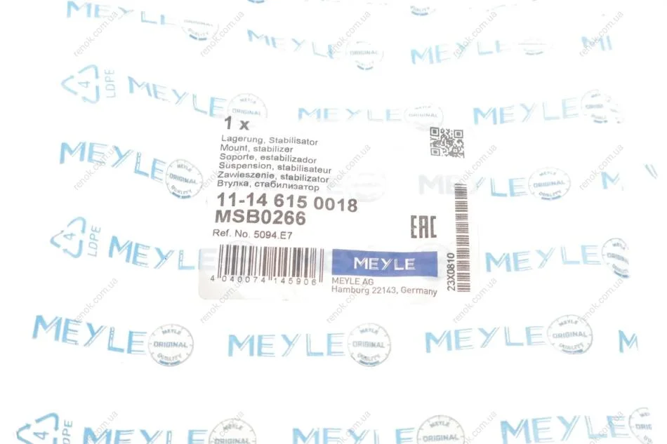Втулка стабілізатора (переднього) Peugeot Partner 1.6-2.0 HDi 08- (d=25mm) MEYLE 11-14 615 0018 (5094E7)